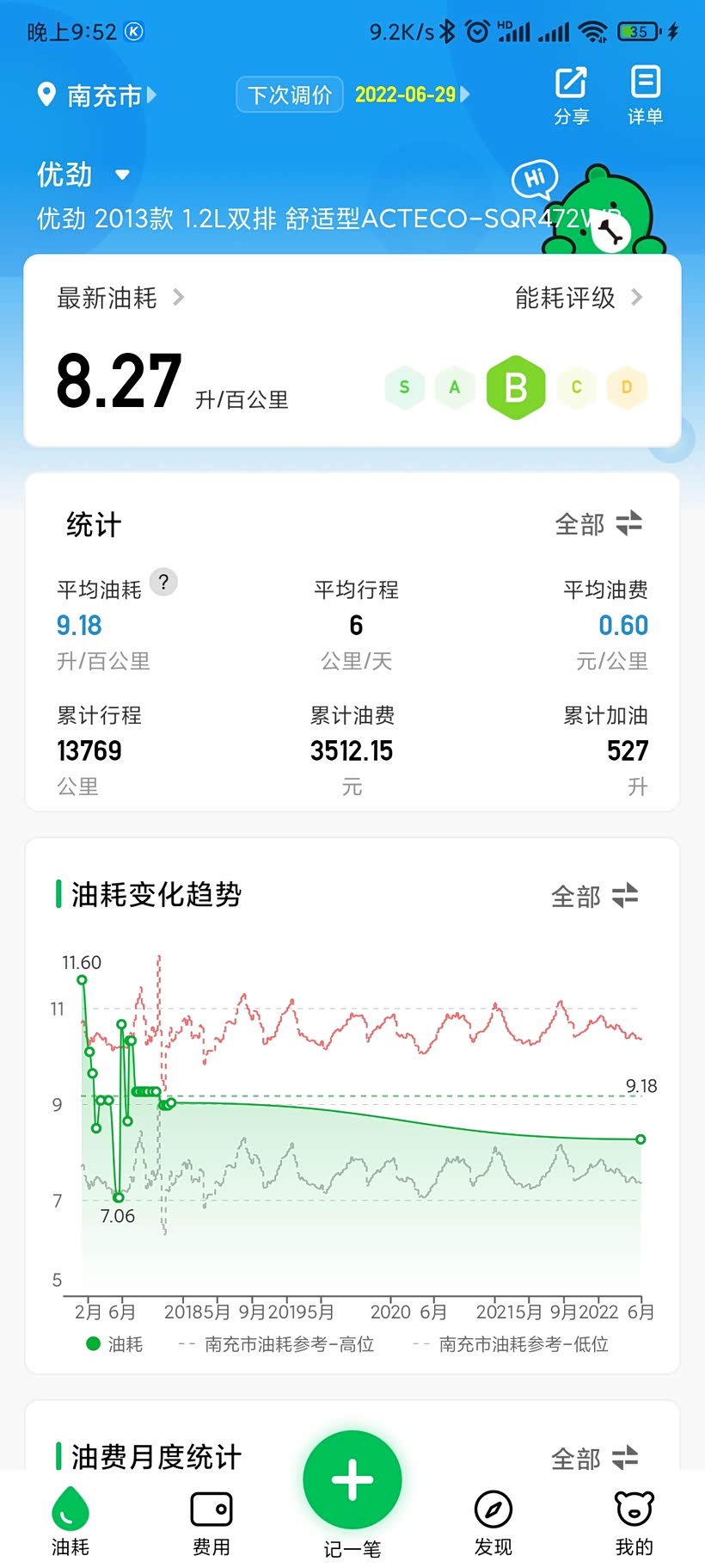 很久没统计油耗了!才发现油耗居然降低了!其实以前统计的是以前2米斗的那个2013款1.2车斗2米的!这个是2016款1.3l的 车斗2.5米