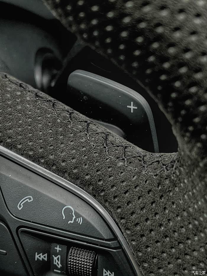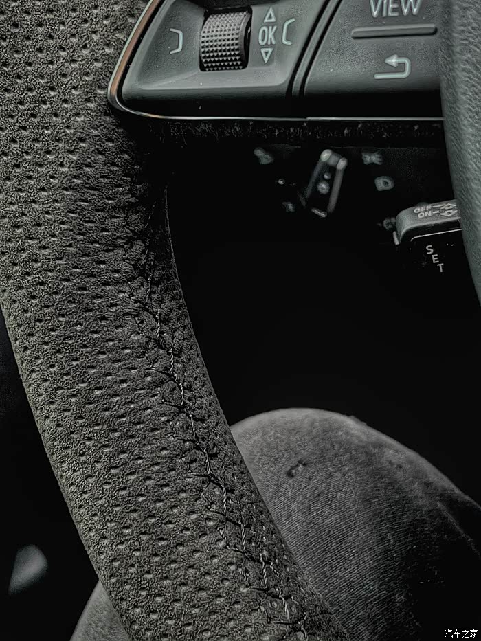 * 方向盘包ALCANTARA皮,解决冬冷夏热的问题,而且原厂座椅也是这个材料,还算般配,没有选用奇怪的配线,就黑色的。