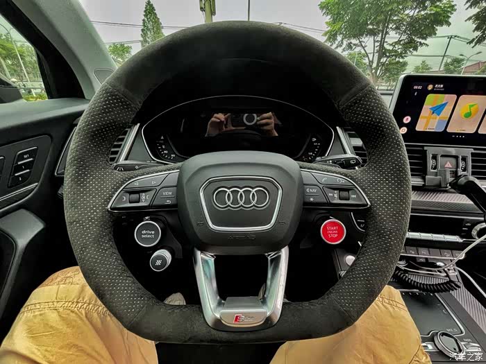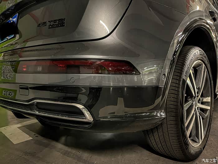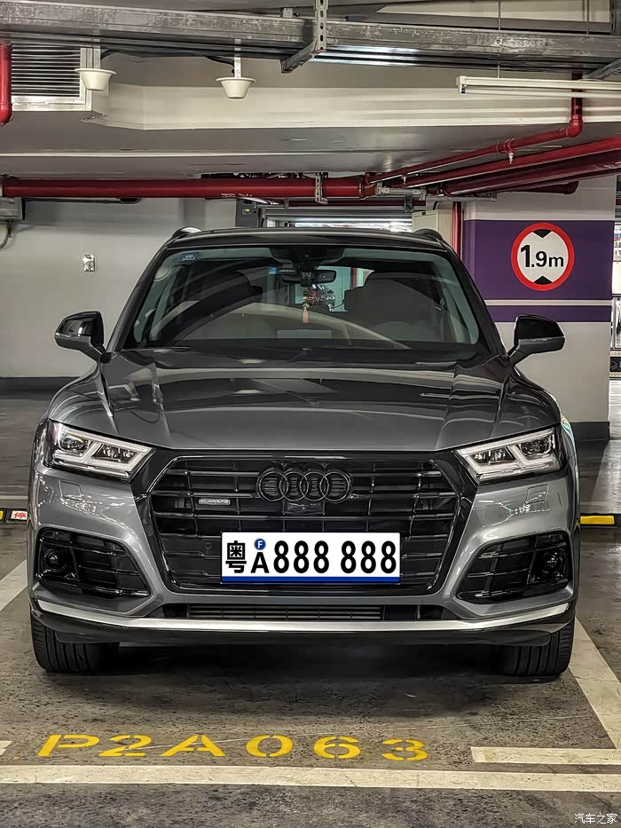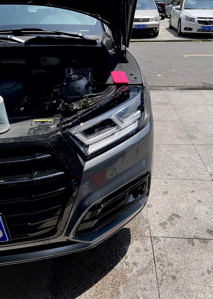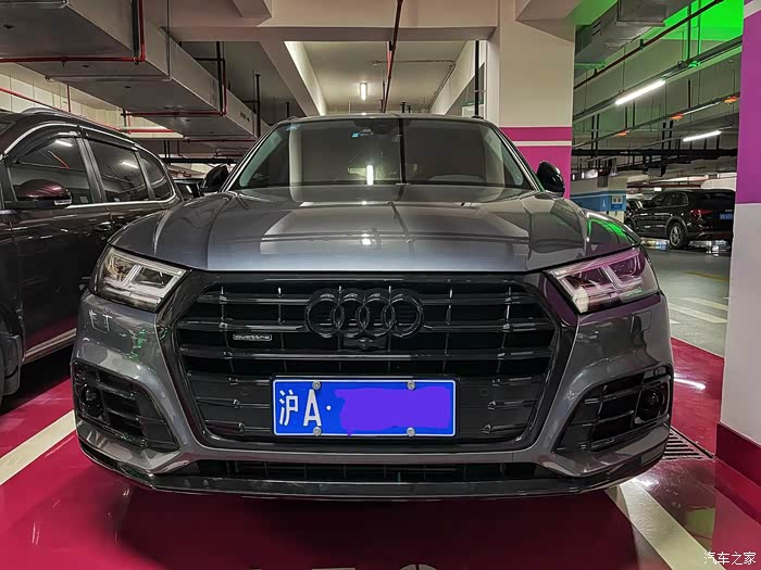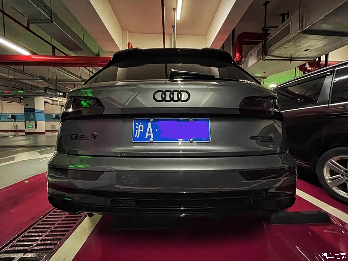 去年原来的SUV坏了,一键启动发不起来,去了4S就神奇的好了,而且还查不到原因,觉得这毛病太耽误事了,就开始看新车。百公里加速一直是喜欢的,X3后排太小,Q5L的液晶仪表盘又非常喜欢,GLC性价比不高根本就没去看过,这样就开始寻找45TFSI了,遗憾的是电话打到各大4S,现车45的都基本没有,最后在本地找到一台季风灰(上一台白车,所以这一次除了白色,黑,蓝,灰都可以),没想到现在这台灰色越看越喜欢。而且这台现车是带BO的次顶配,就立马拿下。看车的时候惊喜的发现原来这车还自带黑光包(好像是需要加4,5000),卡钳出厂也喷红了,省的改了。车窗,轮眉,行李架(亚光黑)都是亮黑的,也不需要贴膜。