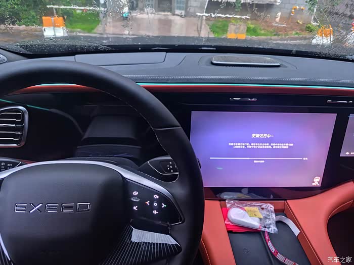 期间有一次OTA。外面下着雨,我在车里看升级。
