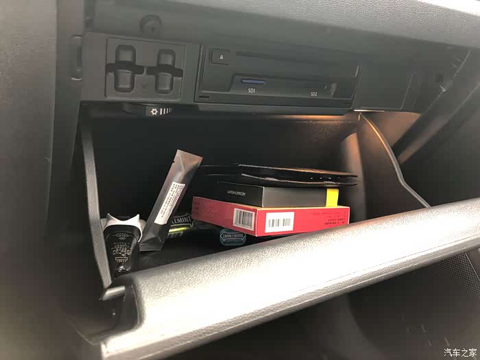 手套箱带CD和SD卡槽,还有空调~内部植绒,细节到位,赞!