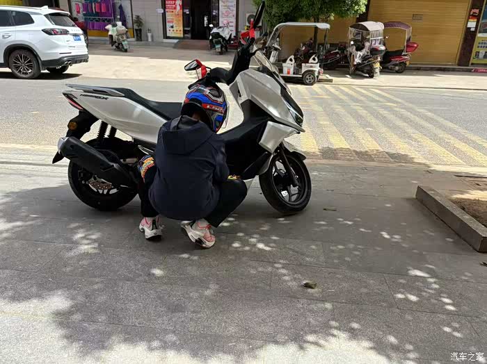 3、稳定,真的很稳,一般新车上手都不敢太快,这个一上来就敢快点,心里很稳的感觉,重心低,我个子不高,脚尖点地就行,不怕倒