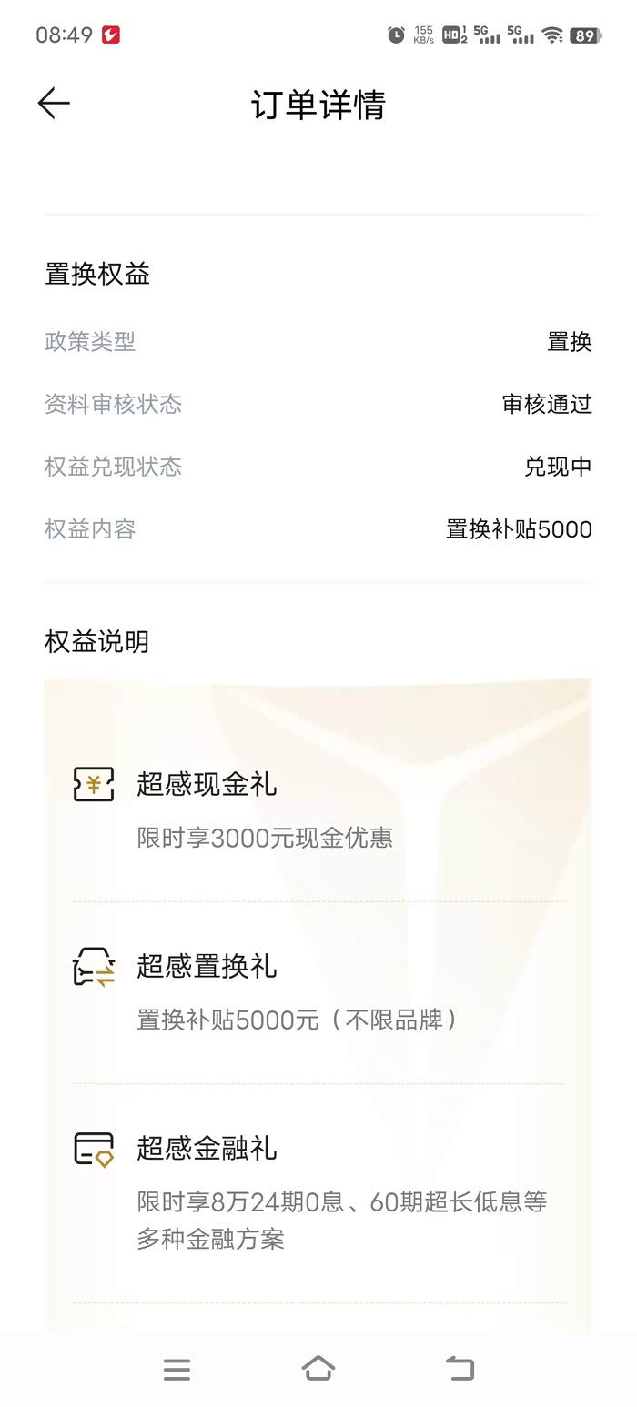 ,9月22日旧车(2016款博越)过户完成,置换权益5000元审核通过