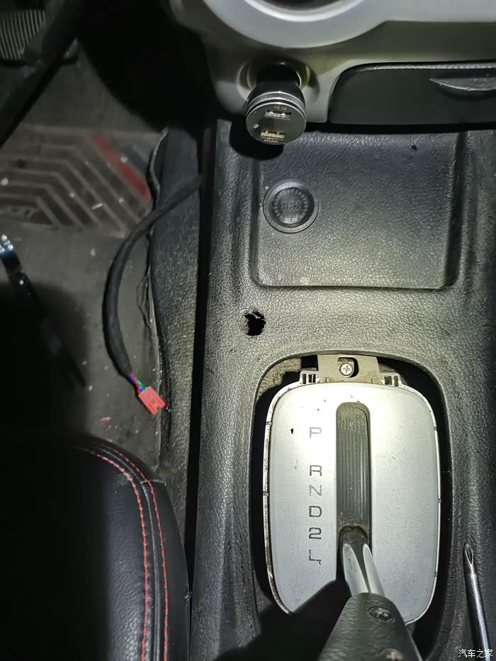这个位置开孔后接好继电器控制线和开关正负极,金属小开关正负极直接从点烟器取电即可。