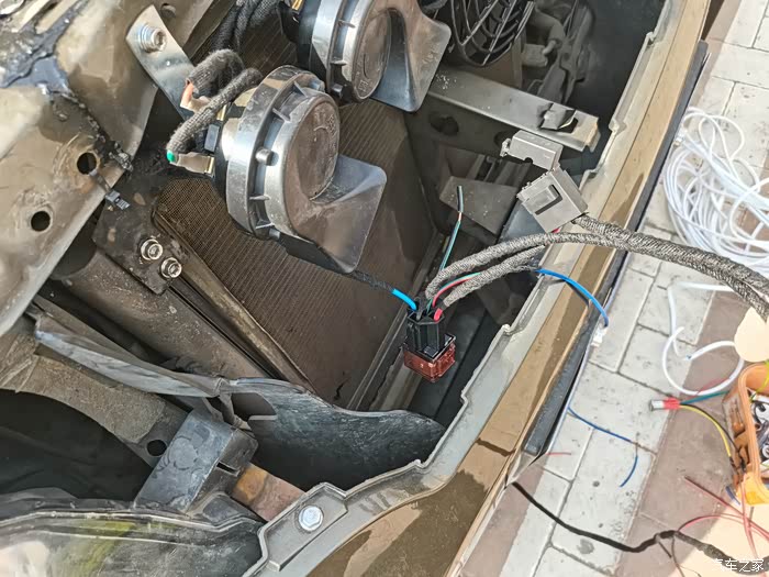 继电器控制线从画红圈密封圈里穿入驾驶室里面连接开关。