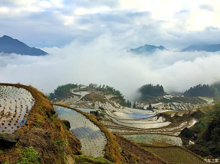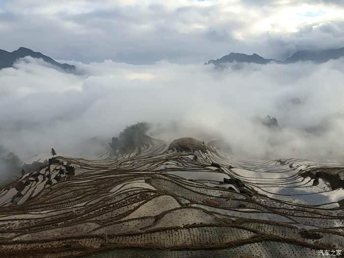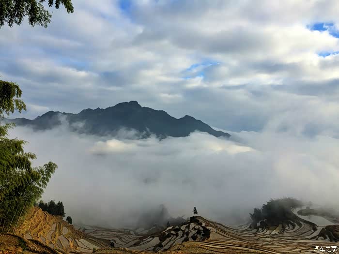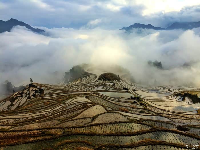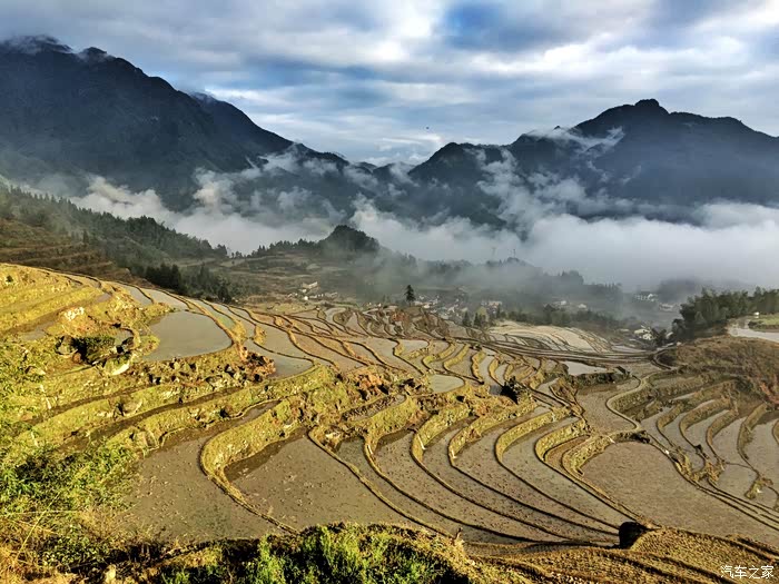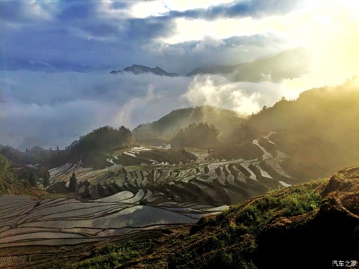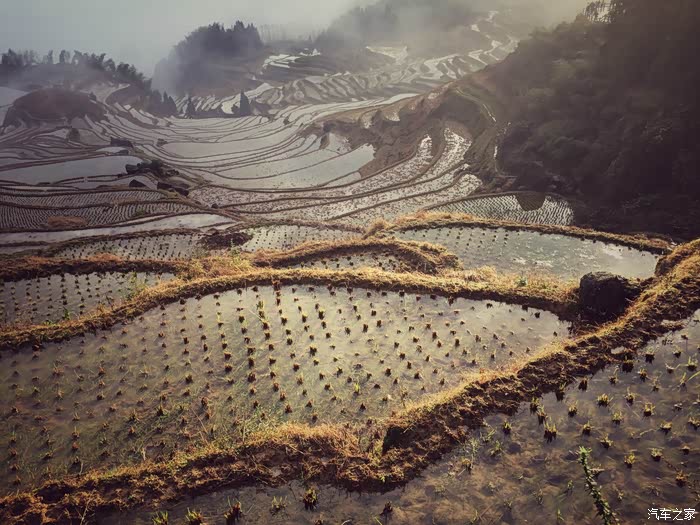 刚才还犹如水墨画的梯田瞬间变成了浓郁的油画