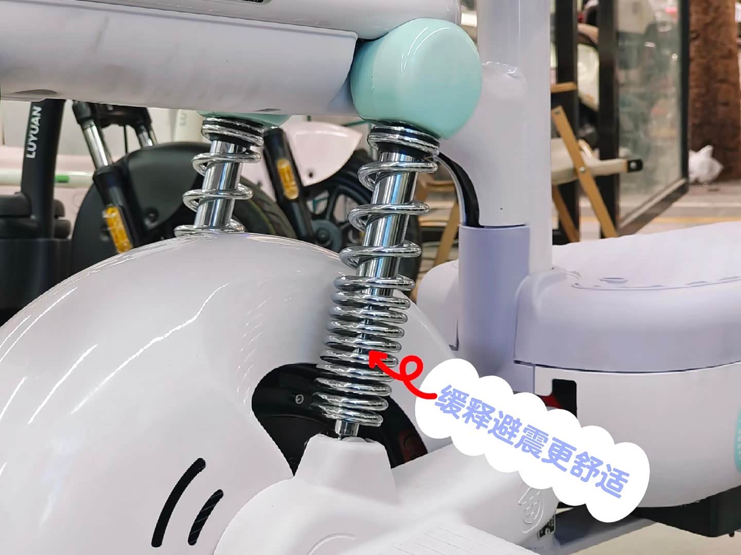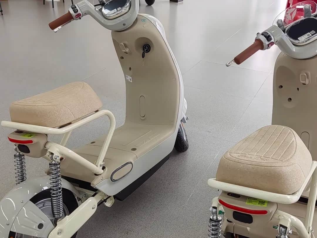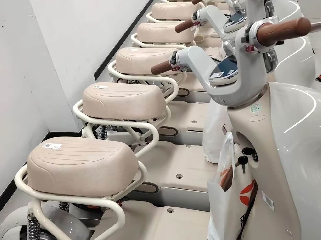 亮点:奶油白车身质感好,双环大灯晚上铺路清晰;PCDS系统能提醒电量、故障,对新手友好。座椅是海绵+乳胶材质,骑1小时也不累。
