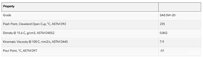 AFE 0W20(MSDS内含)参数: