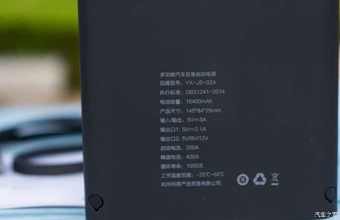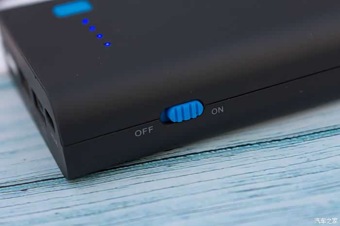我试用的这款产品电池容量为10400mAh(经放电测试容量无虚标,USB 5V输出放电效率97%)。它与普通充电宝相比最大的不同是可以瞬间提供非常大的输出电流,可输出400A,而常规充电宝一般都是1A和2.1A的。