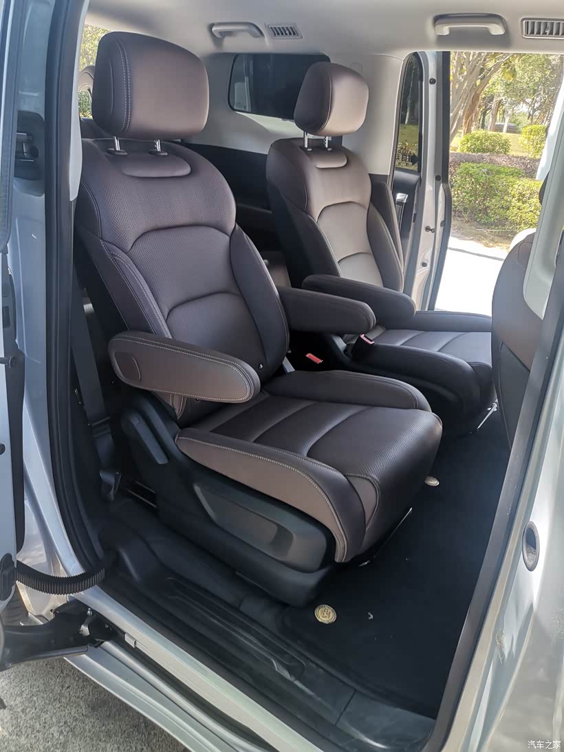 整车的空间也是非常的大,本身以为七座的车型,第三排会比较拥挤,但是我上去试了一下,之后第三排的空间,非常充足,就算跑长途的话,也是不会累,坐着比较舒服,如果说只有四五个人做的话,中间的座椅,那就不用说了,和普通的那种商务车,感觉一模一样,空间非常的大,非常的舒服,还有中央扶手,最主要我平常开车为主,他主驾的座椅还是电动座椅,所以说用起来也是比较方便,包括它的第三排座椅也可以放一些东西,如果说把座椅折叠起来空间也比较大,日常出行完全够用。