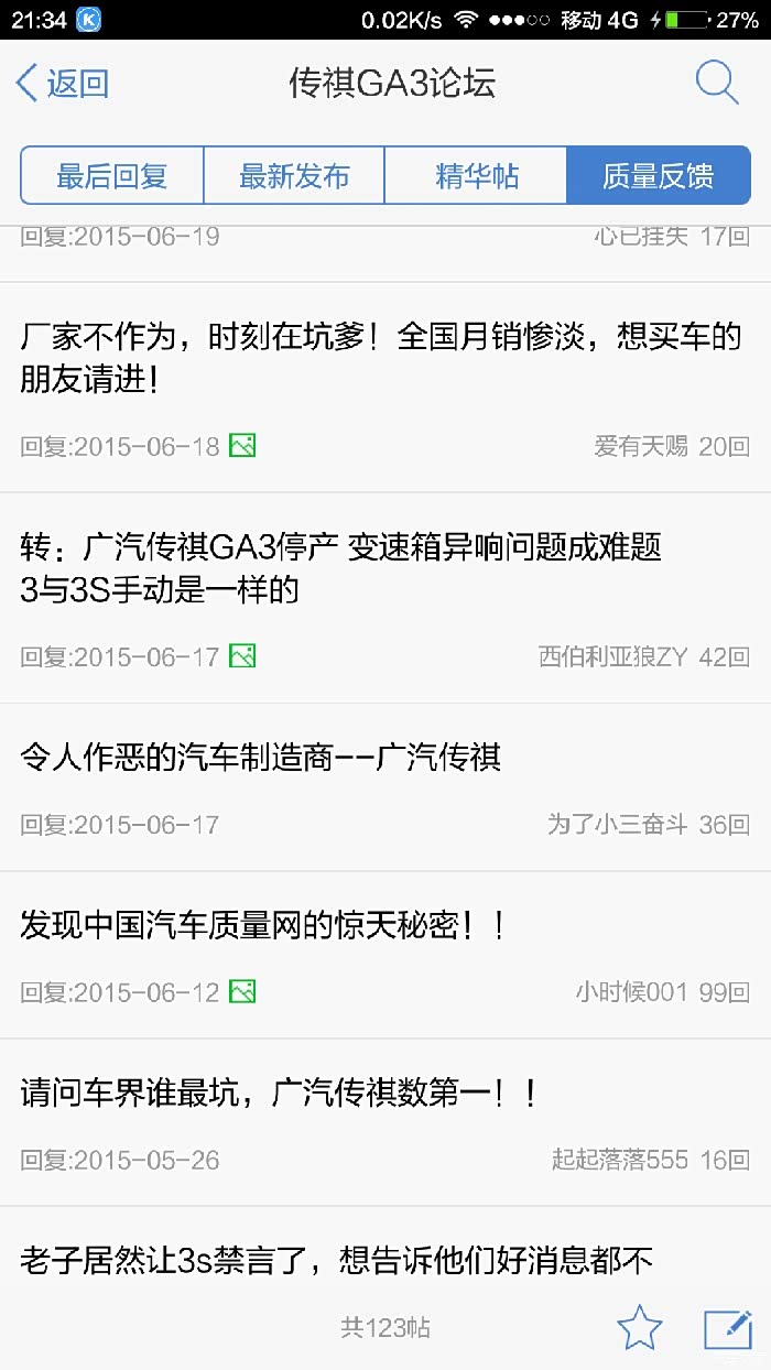 问题当然有,都是些正常零件损耗,不过如果有质量问题厂家给我换了那也不能说厂家不是吧,比如中控发热,空调管支架容易断裂,出现问题我就跟客服说,客服不出一个礼拜就给我换了,我没理由投诉说吉利坏话啊,倒是你们传祺车主的质量反馈贴,一大堆这车在那骂传祺娘,这是有多坑才会骂的那么凶?这可不是我黑啊,自己看,呵呵。