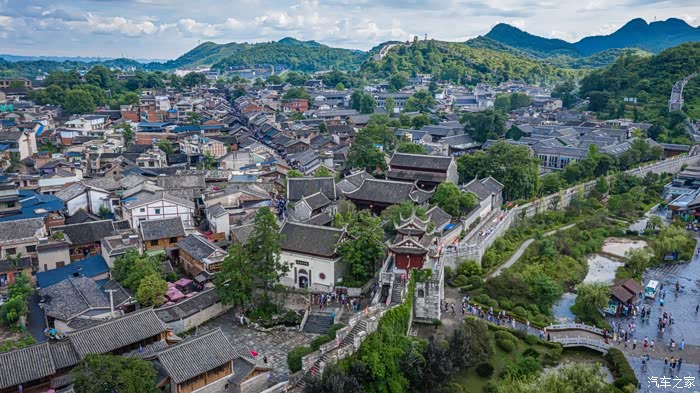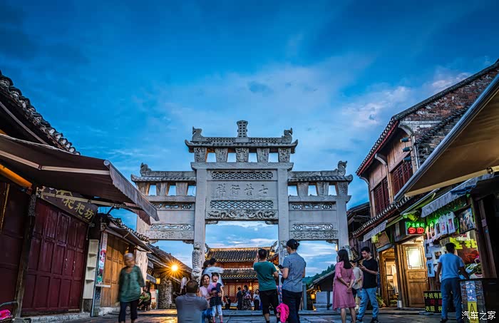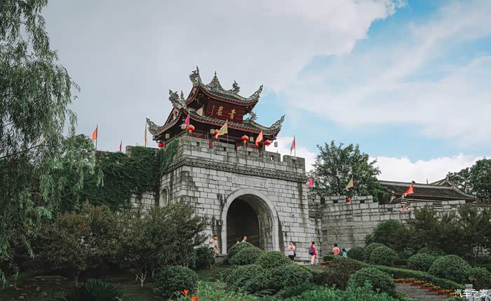 青岩古镇形成于明洪武年间,历明清两代,迄今6百余年。建筑依山就势,城墙用巨石筑于悬崖上,有东、西、南、北四座城门。我们则是从南门——“定广门”入城的。远远望去,城门上大书“定广门”三个字。