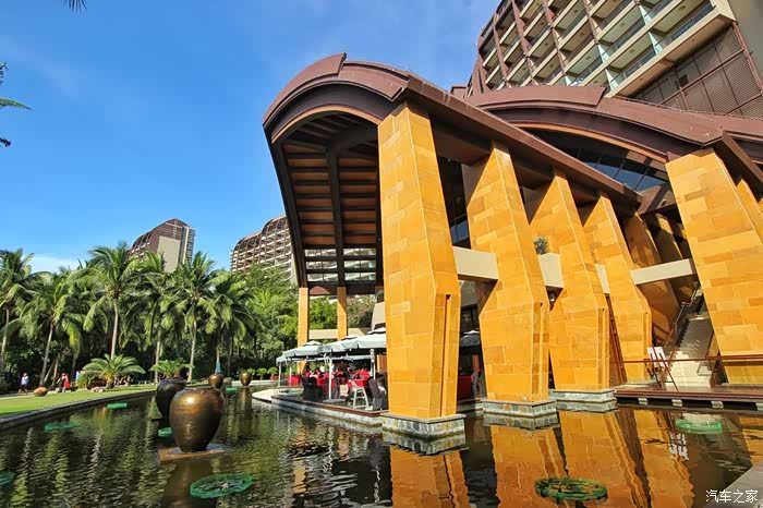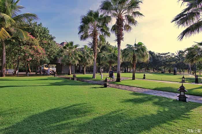 海居帕尔曼是一座有着浓郁东南亚风情的酒店,酒店外面就是一片椰子林,冬天正是三亚的旅游旺季,游客比较多。