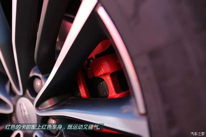我也下车活动活动,注意到运动版的博越是红色的卡钳,搭配红色的车身还是蛮好看的。