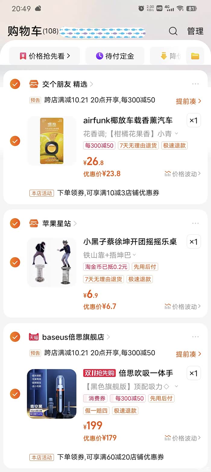 车友买关键的车的工具比如说配件了、机油了这种还是不要贪便宜,从官方网站买就可以了,一些不太重要的香薰、支架什么辅助小件可以淘一些便宜的。