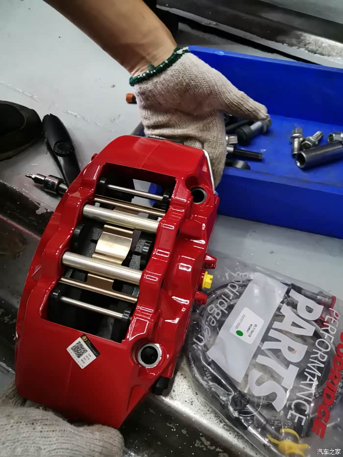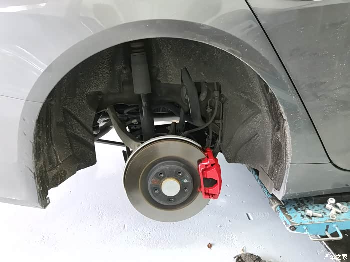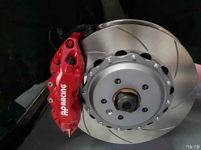 2. 换AP大六活塞配355大碟,大红色看着耀眼,后卡钳也喷红了。