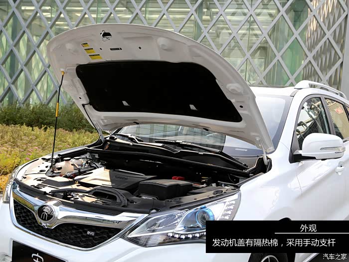▼宋的发动机盖支杆采用的收到支杆,内侧有隔热棉,发动机盖的开启角度比较大,貌似女生会有点压力,这种事就留给男士吧