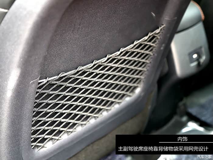 ▼主副驾驶席靠背后侧的储物袋采用可视网兜设计,能直观空间里面的物品