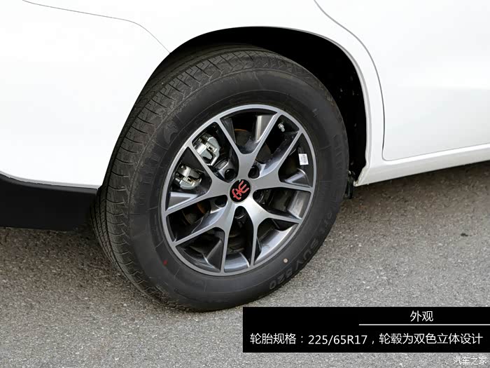 ▼豪雅版搭载的轮胎规格是225/65R17,225的胎宽抓地力以及对刹车有很大帮助,轮毂采用双色设计,有一点点运动的味道,轮毂盖印有“宋”logo