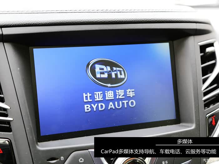 ▼比亚迪自主研发的CarPad多媒体系统,既能满足功能需求也能满足娱乐需求,百度CarLife车机互联系统,GPS导航,车载蓝牙电话,全景影像系统等等