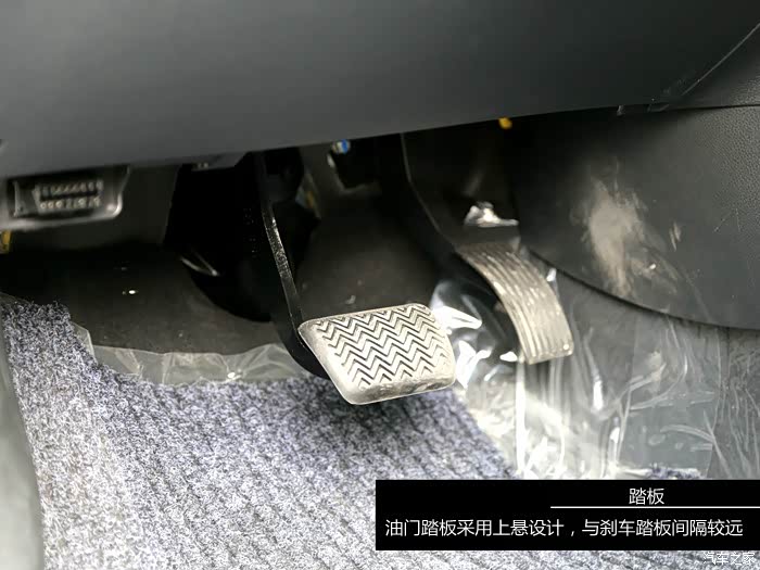 ▼宋的油门踏板有刹车踏板横向间隔比较大,水平高度接近,操作起来既不干扰而且能轻松移动,即使是首次接触,驾驶起来也很快就能上手