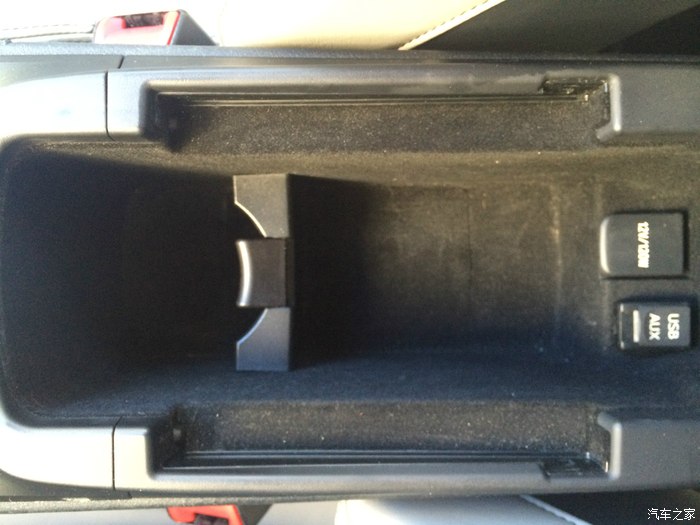 中央扶手箱,拍糊了。。。深度不错,有AUX和USB接口