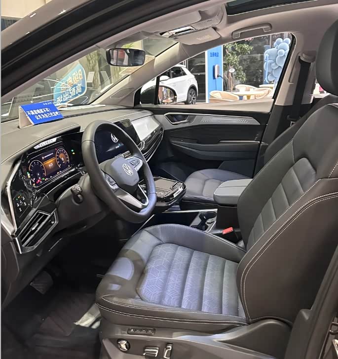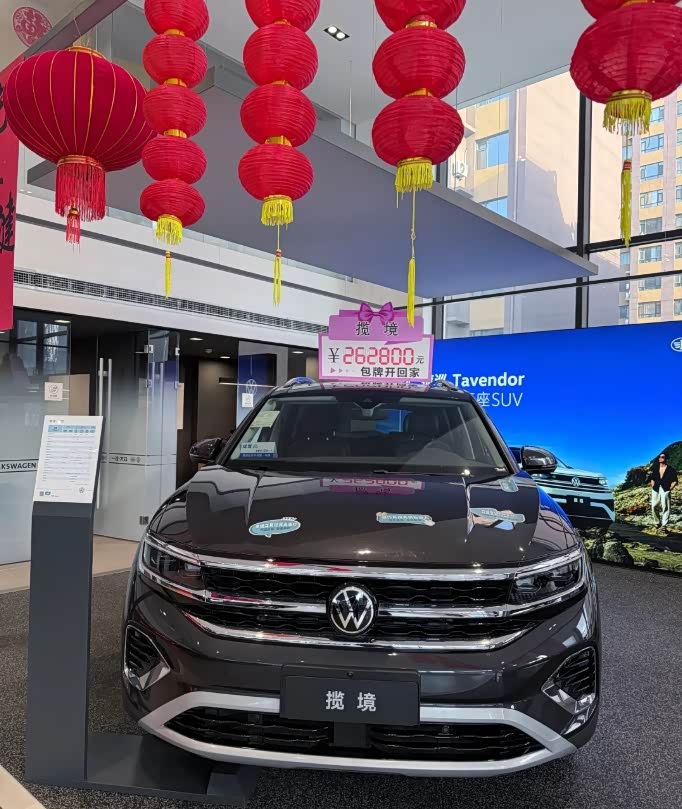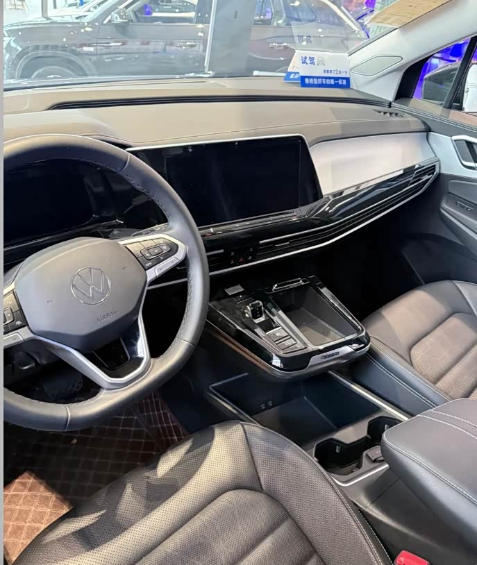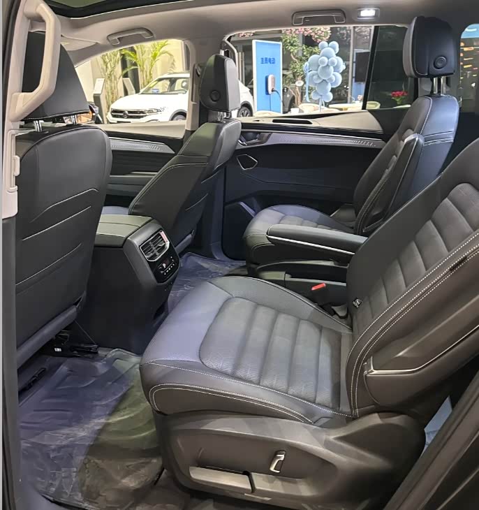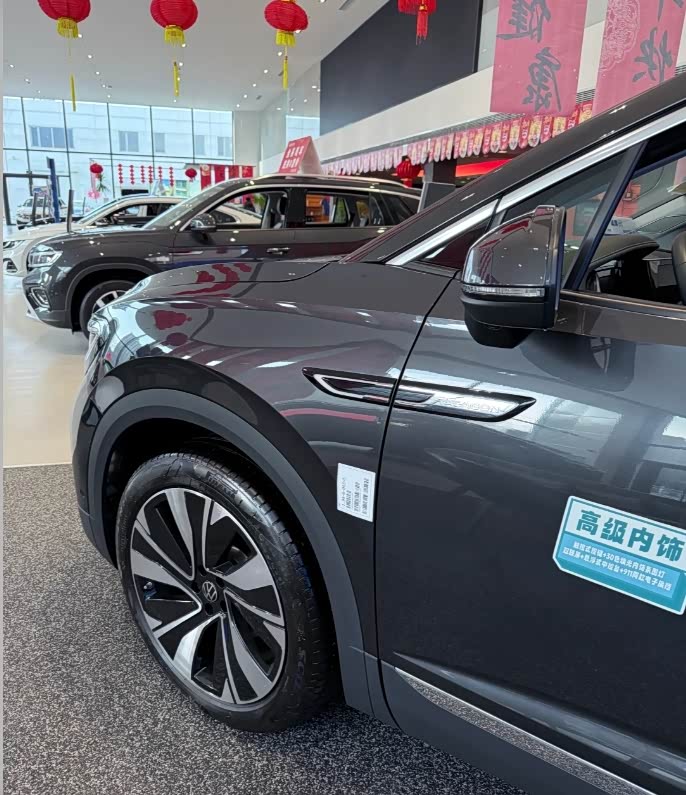 进店第一眼就被他的体量惊到——5.15米车长直接碾压汉兰达,车头贯穿式LED灯带+发光logo很有新能源车的科技感。但21寸轮毂配这个车身刚刚好,停在途昂旁边明显大一圈。