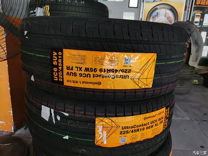 原厂优科豪马轮胎至今三年时间行驶55000公里,其中一条约5w公里时回老家乡村道路上低速过坎胎壁破洞有惊无险,第一次使用超小号备胎小心行驶到老家县城轮胎店临时更换一条同规格仅有的玲珑品牌轮胎使用,价格400元。因工作地点离家较远,高速出行较多,考虑安全无小事加之对原厂轮胎胎噪的不满,于是有了升级轮胎的想法。因原厂轮胎尺寸型号稀缺,经多方咨询、了解、比对最终选定马牌UC6原厂尺寸轮胎。7月28日马牌轮胎官方微信小程序自助订货225/45/19-96W,原厂型号四条轮胎价格4640元。