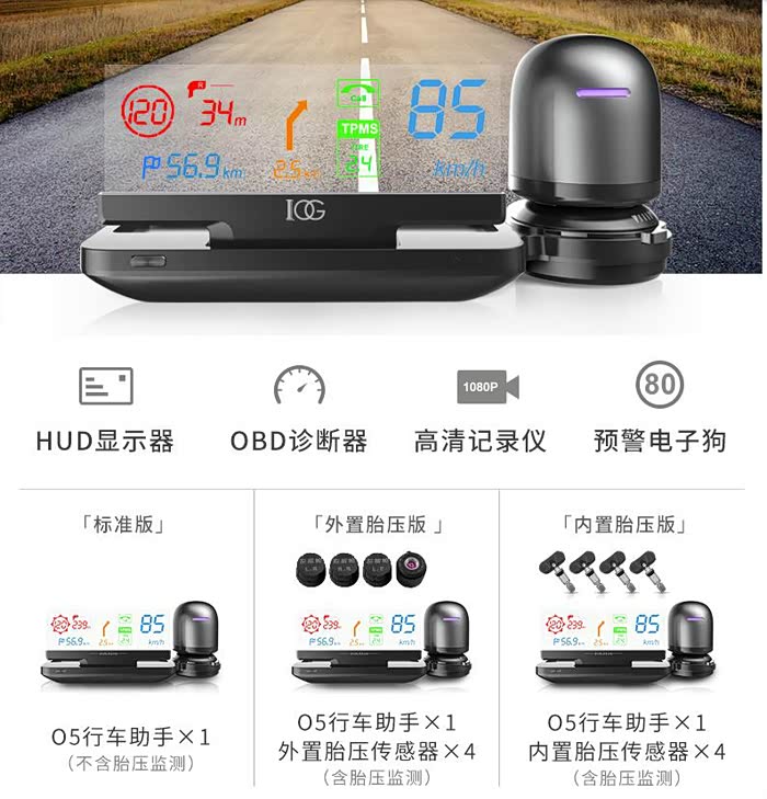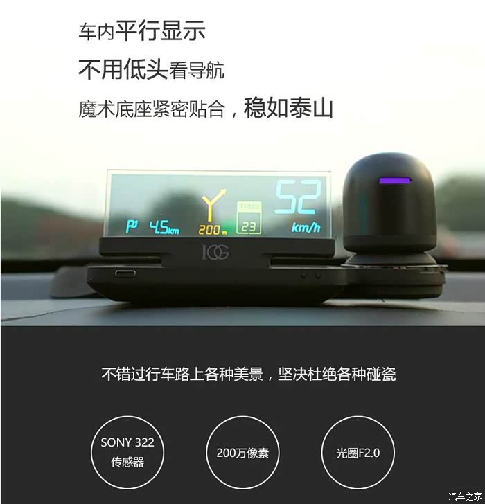 首先我们介绍一下“欧果O5 智能HUD抬头显示”这一产品,HUD的全称是(Head Up Display平视显示器)的缩写,以前都是运用在军方上面的,我们介绍的这一款是安装在车辆上面使用的显示系统,当然了“欧果O5 智能HUD抬头显示”不仅仅是显示器的功能,还结合了语音导航、胎压监测、智能语音、停车监控、随即抓拍等功能,无论是你苹果手机还是安卓手机,APP同步显示,手机就能看监控片段及拍摄的照片,是一款非常实用的产品,有助于行车安全,百度、高德地图同步映射到显示器上,80%的透光率,及时大太阳,驾驶员也可以看的清清楚楚的。基本信息介绍,我将从官网介绍-静态展示-安装过程-app显示等板块进行展示。