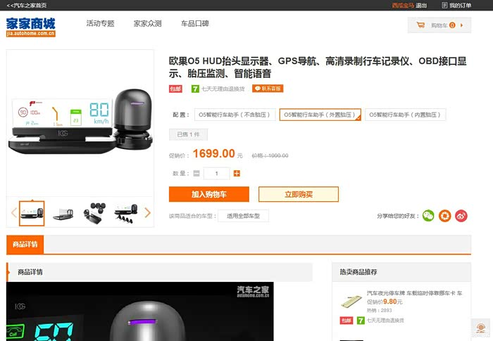 欧果O5 智能HUD抬头显示 购买网页:http://jia.autohome.com.cn/item/detail?spu=104928#pvareaid=2088122
