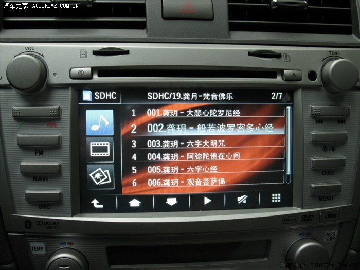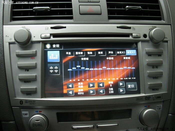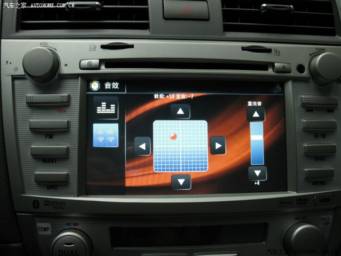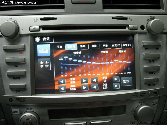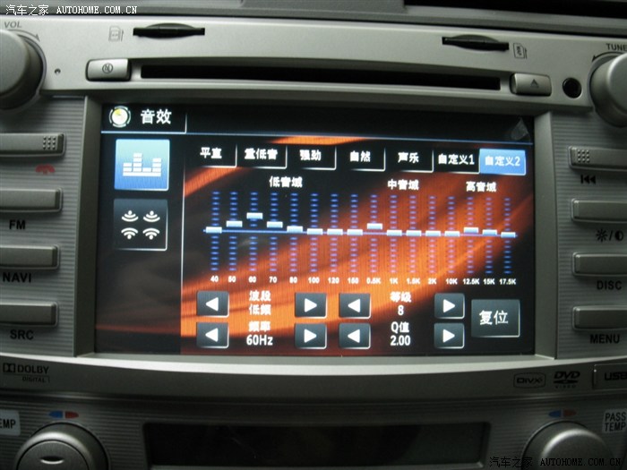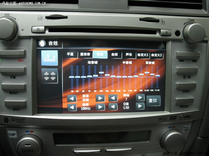 1.音质是我听过的DVD导航是最好的,主机有2.0—5.1声道调整,有环绕声和立体声调整,还有响度、超重低音的调整,声音的调整内容很丰富的,比起其他品牌多很多,满足自己的需要。还有EEQ、皇帝位等调整任你选择。
