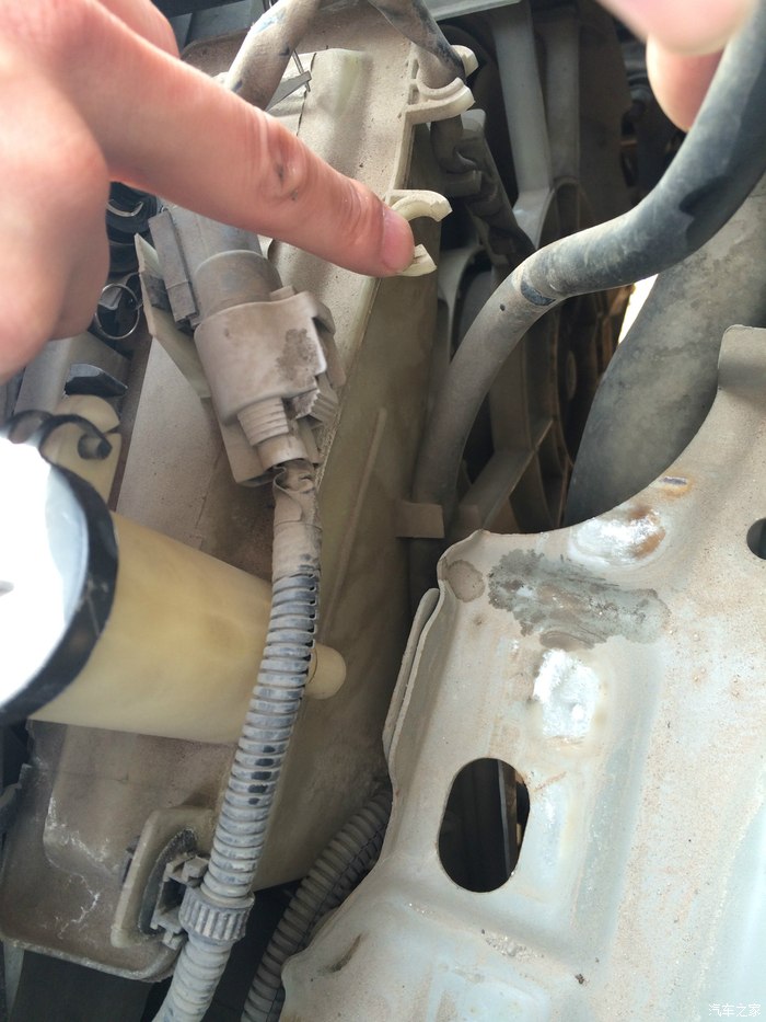 节温器旁边的是水温传感器,还想着如果换了节温器风扇还是停不下来!就得把这玩意替换掉