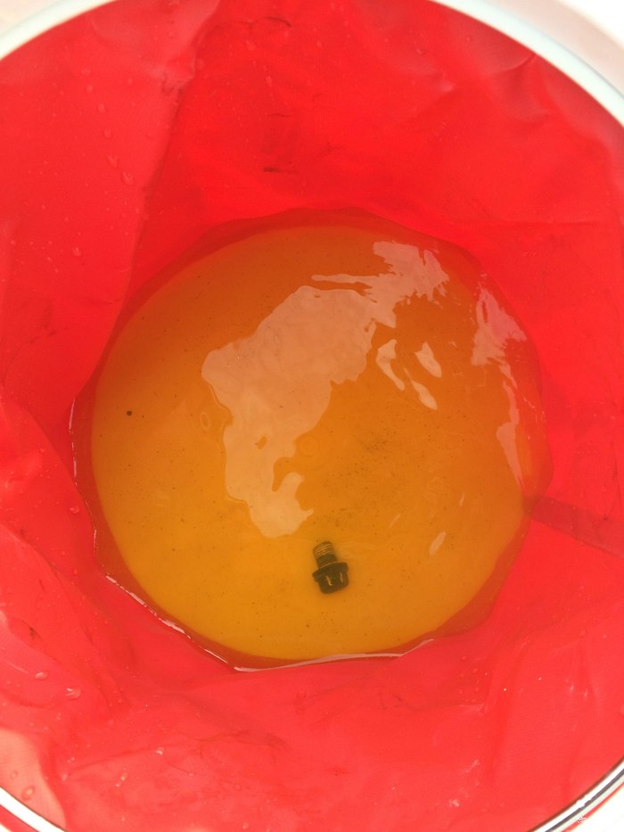 这是放出来的防冻液感觉跟我尿完的液体差不多,估计是很长时间没换了变色了!