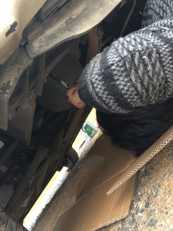 接下来钻进车底找这颗螺丝 型号16的 我拿我拆火花塞的套筒砖下来的 嗯·有点紧 吃奶劲都用上了 总算松 了