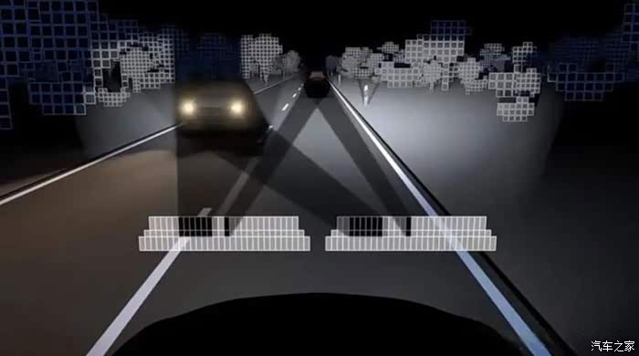 具体来看,车辆行驶过程中可以通过摄像头来识别前行车辆和对向来车,在几分之一秒内通过关闭或者变暗呈矩阵布置的个别LED来改变光的分配,说白了就是在光束中去掉照到前行车辆和对向来车的光,从而达到既照亮了前方的路又不会晃到别人的效果。