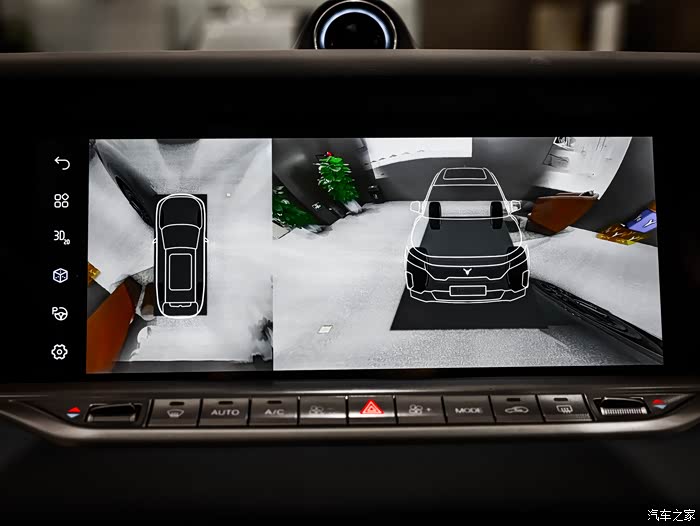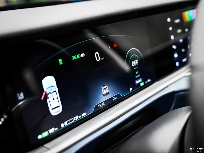 一体式可升降的三联屏中,液晶仪表盘、中控屏幕和副驾驶娱乐屏幕的尺寸均为12.3英寸,驾驶员和副驾驶可以通过多指飞屏操作,完成三屏联动,相互推送导航、音乐等。