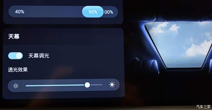 接下来这个配置我觉得有必要聊一下,就是头顶上的这个可调光全景天幕了。它到底值不值13000元,且听我给你分析分析。很多朋友犹豫要不要去选装这个配置,不是因为贵,主要是担心天幕的隔热性能,怕夏天车里热。
