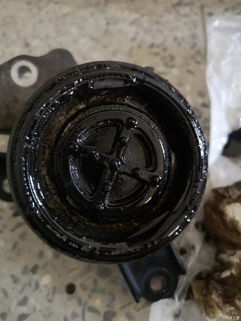 右侧机脚胶开裂漏油,发动机怠速抖,加速1~2千转共振,买了一个国产件替代,结果振动很夸张啊(结构有问题,后面详说),比漏油的原车还夸张!原车机脚胶整体结构还是完好的只是漏油了,既然拆下就研究一下吧。