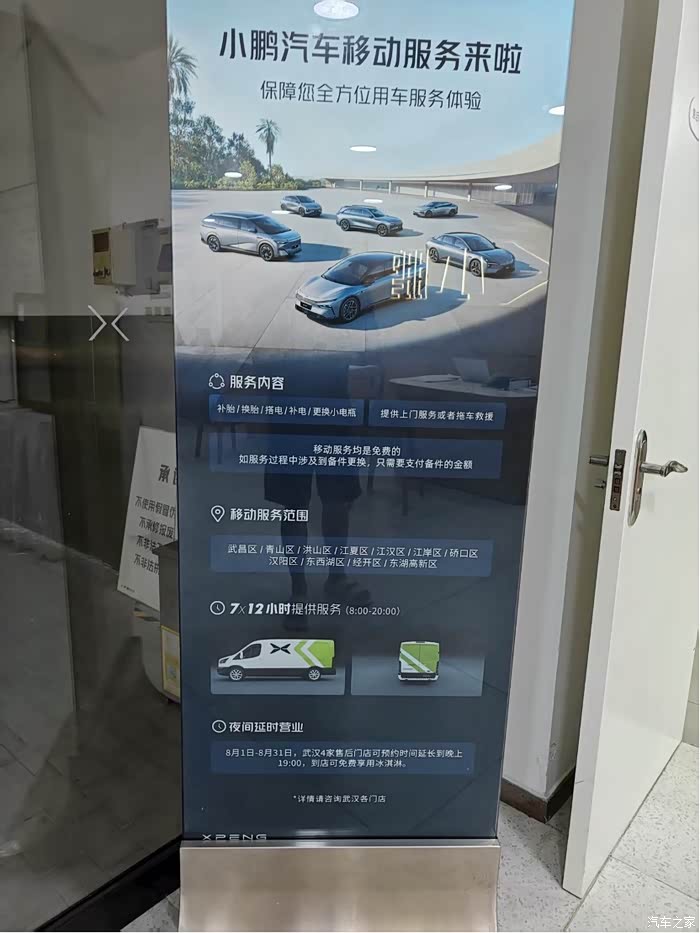 直到最近有空了,我上周五就在小鹏APP的服务页,预约了武汉光谷销售服务中心周六的保养。我预约的是17点,到了之后发现已经有很多车子在排队维修保养了。服务顾问引导我停好车后,就让我先去二楼休息区坐一会儿。因为之前交车也是在这里,所以我对这里还是比较熟悉的。