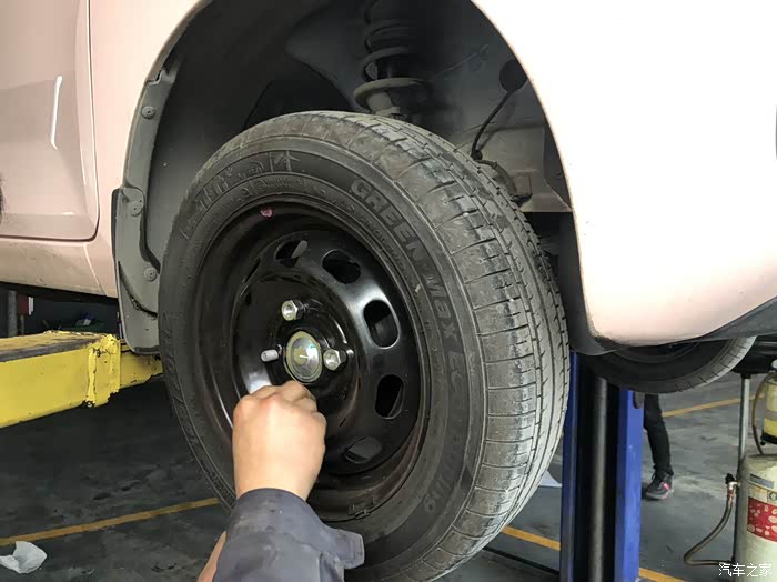 接着技师又把刹车片检查一下