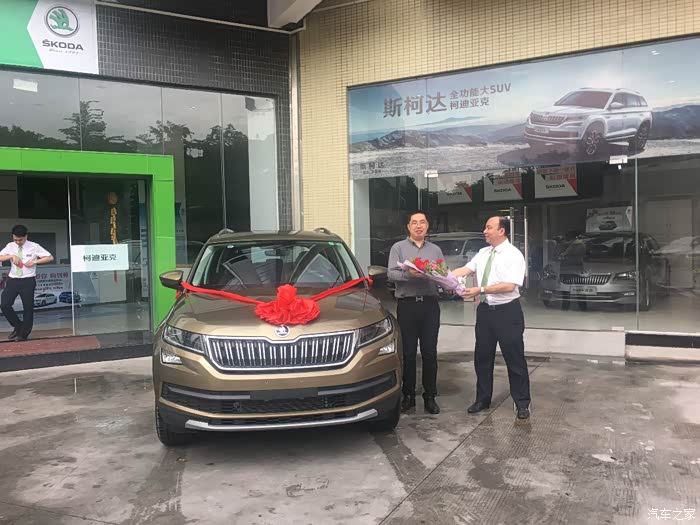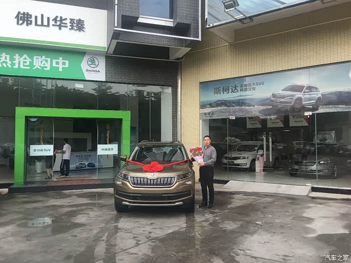 当天去看车才知道每个店暂时只有一台5座的豪华版试驾车,可是要想要的7座豪华版流沙金就订车,要等2~3个月,晕,o()︿︶)o 唉!只能等着噜,后来才过了几天一大早就接到了销售游先生的电话…原来有车到店拉拉,哈哈哈!我到店看车、试驾,感觉柯迪亚克实际开起来确实不,转向精准低速打方向很轻,速度上来后方向盘立马有重的感觉,但是开起来不费力气,都非常满意~!可是..游先生告诉我一件事,就是这台车暂时还不能销售,原因:暂时不知道厂家是否要求所属的4s店当试驾车用。又要等..几天后游先生打电话给我车可以销售,终于可以等到你喇!