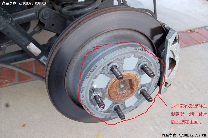 后碟刹鼓式驻车制动刹车结构中间的凸出部分明显比钳式驻车制动器的要大一些,这是因为里面安装了驻车制动蹄,从而增加了这部分的体积。如果车友仔细观察就会发现这个问题的实质性区别在差异哪里。