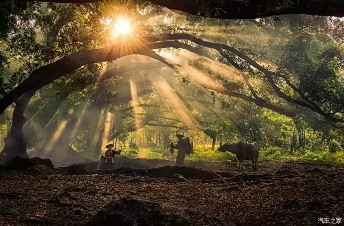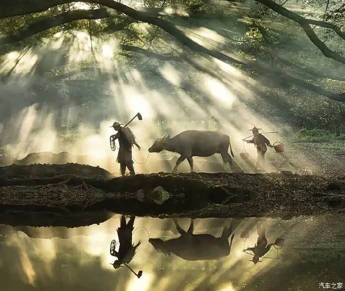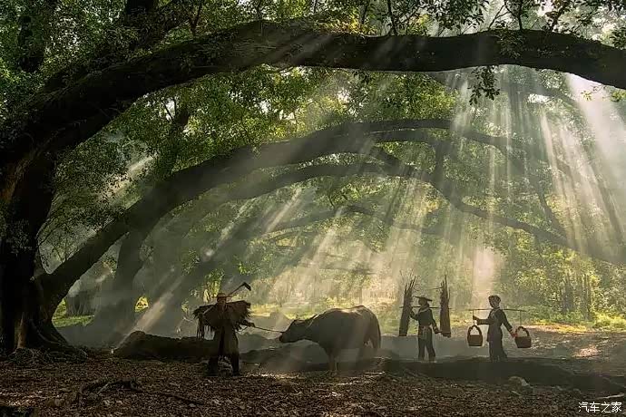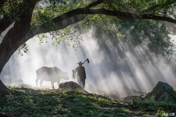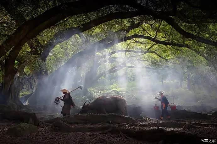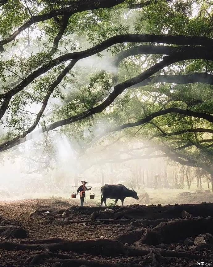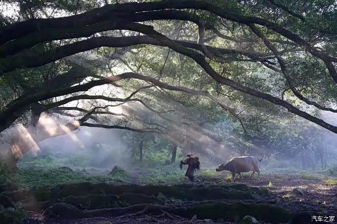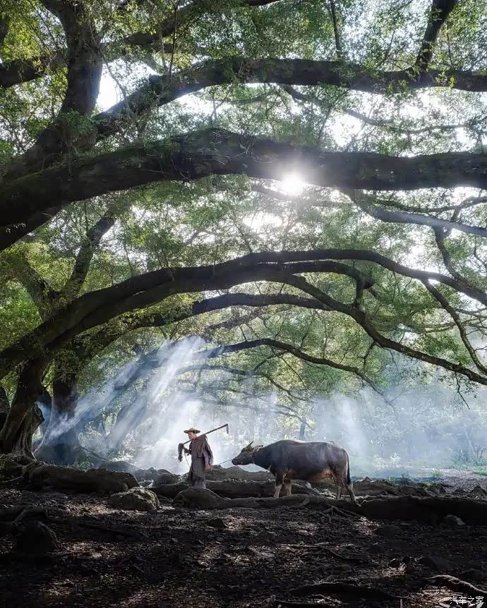 福建霞浦杨家溪的古榕树群。一位农夫一头牛,榕树妖娆如盘龙。