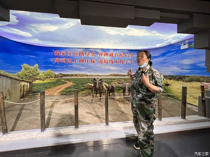 张正美的语言表达能力很好,再加上这里展示的也是她再熟悉不过的内容,所以我们在她精彩的讲解下知道了185团的前生今世;知道了185团所在的这一片国土的来龙去脉;知道了1988年以来,她和马军武二人克服艰苦的生存环境,忍受寂寞,以哨所为家,风雨无阻地在边境线巡边、守水、护林的动人故事