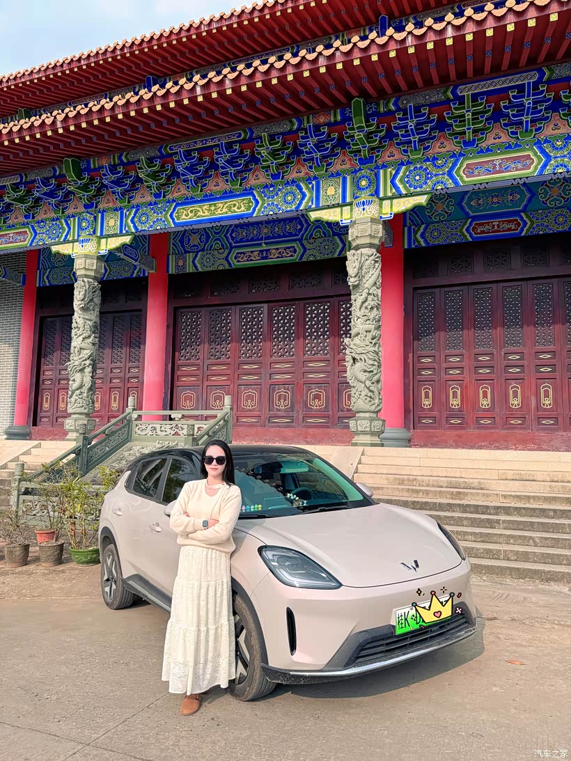 午后的阳光正好,驱车前往宝相寺。寺庙藏在城郊的一隅,路不算好走,少了几分喧嚣,多了几分宁静。返程前,特意给缤果S拍了张照,它安静地停在寺外,像个乖巧的伙伴,等着我开启下一段路。