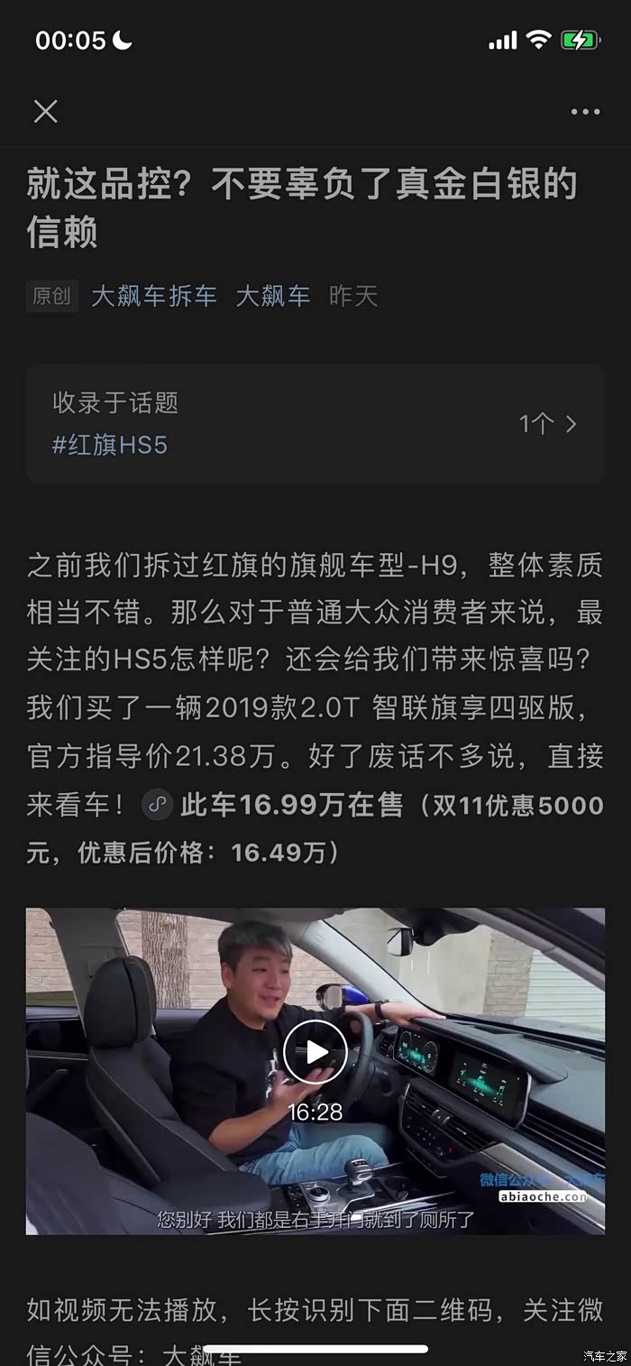 但是也要拆车视频对HS5评价很高。不要听一家之言