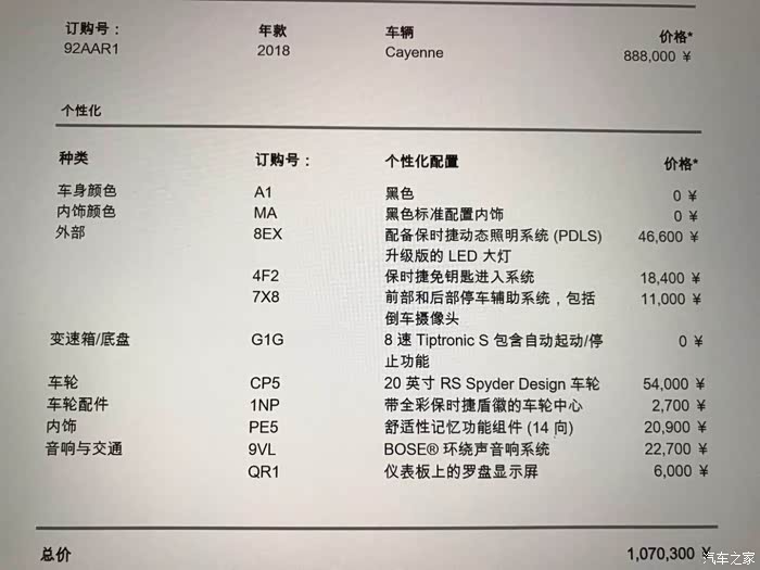 车型是2016款CAYENNE BASE(3.6美国,国内这个是3.0T的版本)
