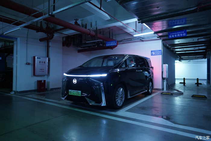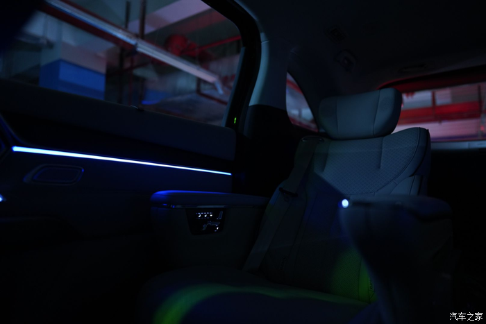 回头看下车离墙实际距离和液晶屏显示距离几乎没有差别之余,看了下后排的氛围灯,简约的美感被释放出来了。