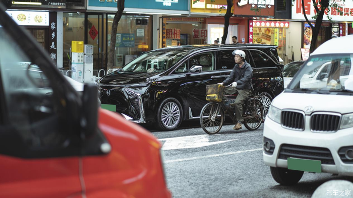 很多年没有看到这样的自行车了,与合创V09并排之时,有了些许时代交融的感觉,有年代感的自行车是把我拽回父辈曾经的生活,而合创V09则像是在展现广州这个城市发展进步的速度,两者虽定义不同的时代,却都寓意着对美好生活的向往。