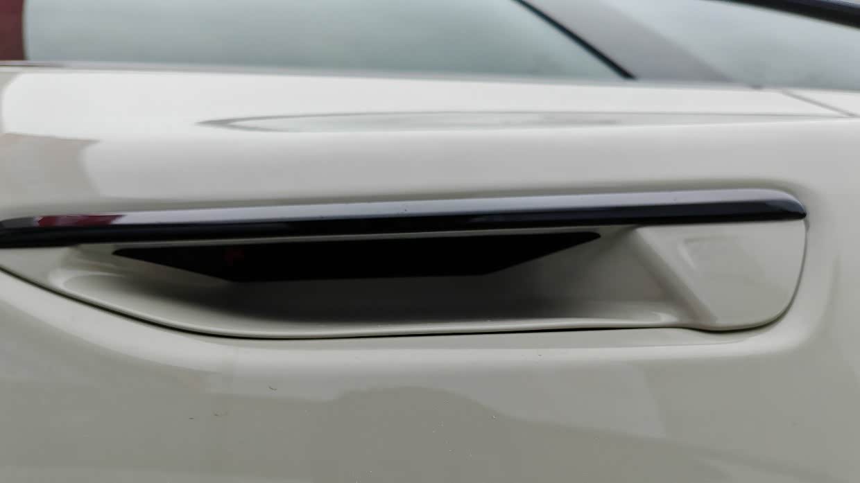 车门把手是半隐藏式的按钮感应式的门把手,在降低风阻的同时也给人一种科技感,在正常行驶的过程,机械拉环是不会掉出来的,只有在碰撞,安全气囊炸开的时候,外门把手里面的机械开关拉绳会掉出来。